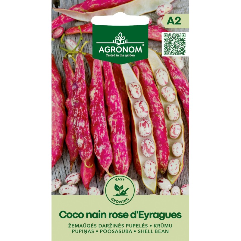 Avasta Coco nain rose d'Eyraguse seemned, mis toovad su aeda värvi ja maitset! Need keskmise varajase kasvutsükliga oad on tuntud oma kõrge saagikuse poolest. Oad on kollakad punaste triipudega, suured ja silmatorkavad, ideaalne valik igasuguste roogade jaoks.