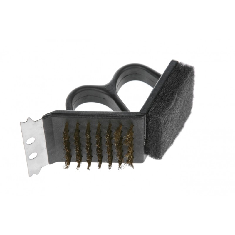 Эта щетка объединяет в себе скребок, губку и щетку, что делает её незаменимым инструментом для настоящих любителей барбекю. Размеры 9 x 12 см позволяют удобно держать щетку в руке и обеспечивать качественную очистку.