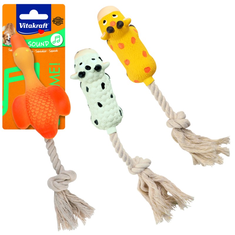 Otsid oma koerale lõbusat ja kaasahaaravat mänguasja? Vitakraft mänguasi talumajapidamises on ideaalne valik, millel on vastupidav köis, mis sobib suurepäraselt tõukamiseks ja närimiseks. Valmistatud lateksist, on see mänguasi mõeldud tundide kaupa meelelahutuseks, olenemata sellest, kas Sinu karvane sõber on väike kutsikas või suurem tõug.