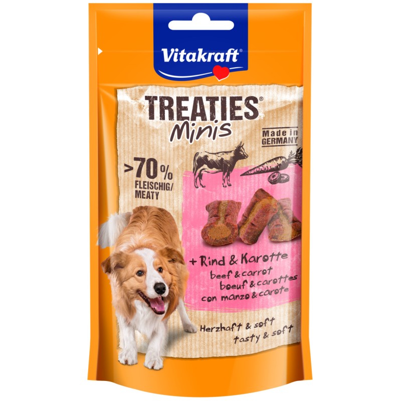 Vitakraft Minis veiseliha maius on ideaalne treeningu suupiste või lihtsalt väikeste koerte hellitamiseks. Need maitsvad snäkid, mis on täidetud veise ja porgandiga, pakuvad puhtalt, pehmet ja maitsvat naudingut neljajalgsetele sõpradele. Iga tükike on õrnalt küpsetatud ja valmistatud Saksamaal, mis tagab, et need on mitte ainult maitsvad, vaid ka eriti mahlased.