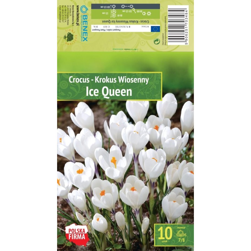 Krookused Ice Queen on imeline püsik, mis kasvab kuni 10 cm kõrguseks. Need õitsevad märtsis-aprillis, tuues kevade aeda. Krookused on suure läbimõõduga, 3–6 cm, ja sobivad istutamiseks aiapeenardesse, pottidesse ja ka õitsevatesse muruväljakutesse. Ideaalne valik igale aednikule!