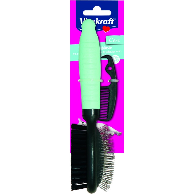 2in1 harja on ideaalne vahend teie kassi hooldamiseks, aidates saavutada kauni ja läikiva karvakatte. Harjal on kaks külge: pehme metallist harjastega pool, millega on mugav eemaldada sassi läinud ja lahtist karva, ning nailonist pool, millega eemaldada tolm ja siluda karva.