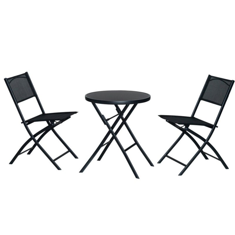 Muuda oma rõdu või väike õu hubaseks puhkekohaks selle must rõdu komplektiga. Komplektil on ümmargune laud, mille diameeter on 60 cm ja kõrgus 70 cm, mis sobib ideaalselt hommikusöögi nautimiseks või õhtusteks vestlusteks. Komplekti kuuluvad kaks mugavat tooli, mille mõõtmed on 46 x 56 x 83 cm, mis on disainitud stiilse musta toruraami abil.