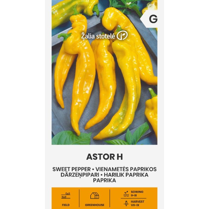 Magus paprika Astor H on varajane kõrge hübriid, mis pakub tugevat kasvu ja erksat maitset. Sellel on läikivad viljad, mis ulatuvad kuni 25 cm pikkuseni ja kaaluvad umbes 200–210 g, küpsedes erksaks kollaseks. Ideaalne kasvatamiseks nii kasvuhoonetes kui ka õues, need paprikad kasvavad hästi päikeselistes kohtades, mis on tuulte eest kaitstud.