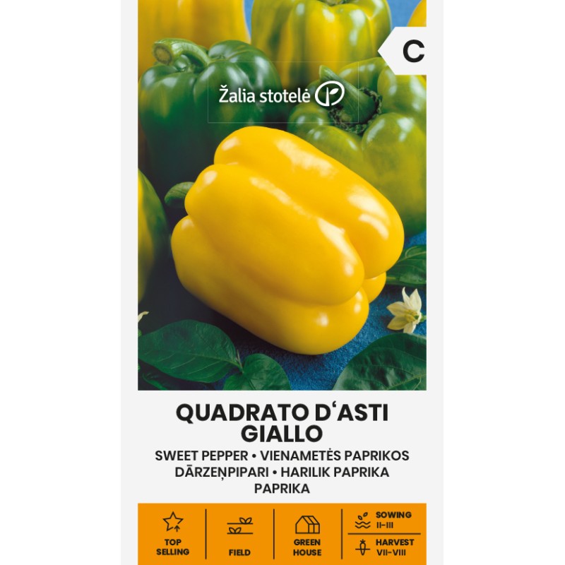 Avasta Quadrato d'Asti Giallo magusa paprika võlud, mis on ideaalne valik koduaedadesse. See keskmise varajase valmimisega sort on tuntud oma lopsakate ja kõrgete taimede poolest, mis kannavad suuri, neljakamber vilju. Viljade kaal on umbes 280 grammi ning need muutuvad küpsedes elavkollaseks. Paprika seinad on 7–8 mm paksud, mis teeb need maitsvaks ja mitmekülgseks!