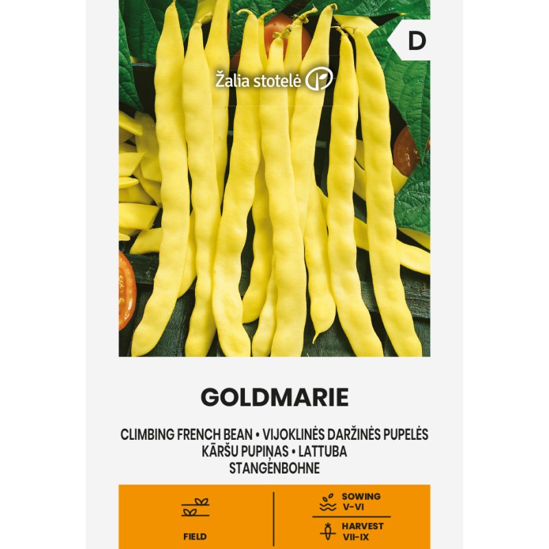 Avasta aianduse rõõmud roniva Prantsuse Goldmarie ubadega! See keskmise varajase sordiga oad kasvavad kuni 3 meetrit kõrgeks ja annavad rohkesti saaki. Oad on lamedad, kollased ja pikkusega 20–25 cm, ideaalne mitmekesiste roogade valmistamiseks.
