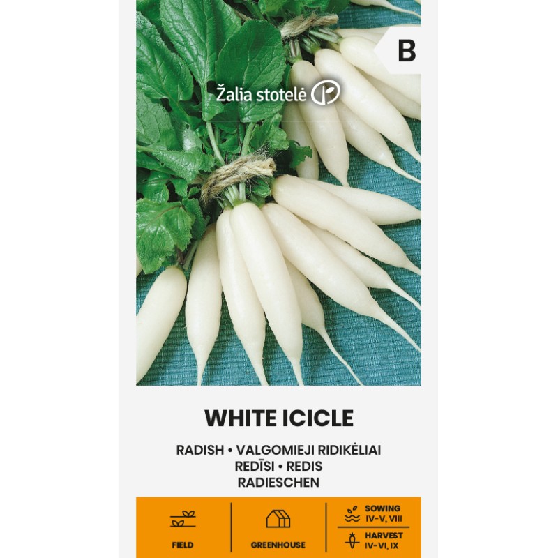 Avasta Redis White Icicle, varajane sort, mis sobib suurepäraselt aia kasvatamiseks! Sellel jäädikal on kiire kasvuperiood vaid 30–32 päeva, mistõttu on see ideaalne kevad- ja sügisene saak. Juured on valged ja saledad, pikkusega 10–12 cm, ning maitse on pehme ja meeldiv, mis rikastab teie salateid ja roogasid.