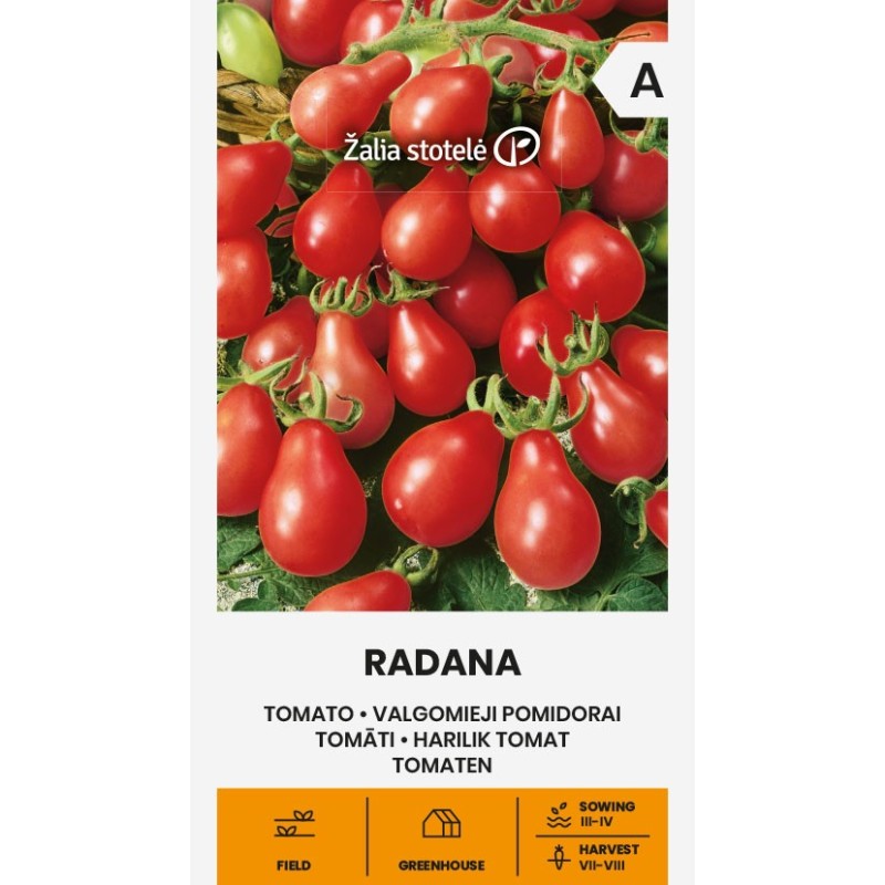 Tomat Radana on suurepärane keskmise kuni hilise kasvutsükliga tomatisort, mis pakub rikkalikku saaki. Iga taim kannab umbes 20 väikest, pirnikujulist, erksavärvilist tomatit, mille kaal on 15-20 grammi. Need punased viljad on ideaalsed värskete salatite, purkide ja toitude kaunistamiseks.