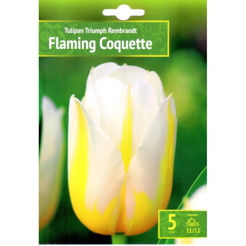 Tulipa Flaming Coquette on kaunis mitmeaastane taim, mis õitseb varakevadel, lisades värvi igasse aeda. Sellel sordil on elegantne valge kroonleht, millel on erksad kollased triibud, mis muudab selle silmapaistvaks lisandiks lillepeenardesse või kimpudesse.